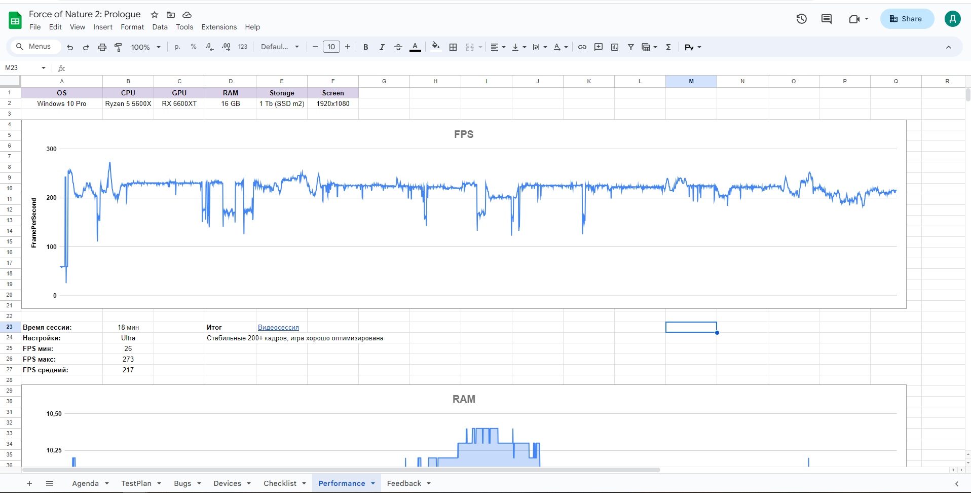 На графике RAM проверяется, нет ли тенденции к постоянному росту потребляемой памяти, и, в целом, адекватность её потребления приложением.