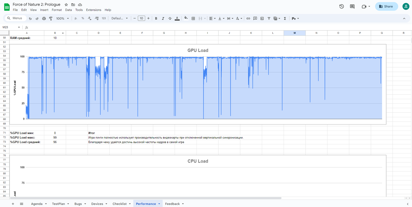 На графике GPU Load интересует то, на сколько % используется видеокарта. Если видеокарта используется на 90-99%, то приложение правильно использует возможности видеокарты.